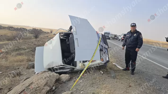 Խոշոր ավտովթար. Աշտարակ-Եղվարդ ճանապարհին բախվել են հարսանիքի մեկնող քավորի «Opel»-ն ու «07»-ը. վերջինը կողաշրջված հայտնվել է դաշտում