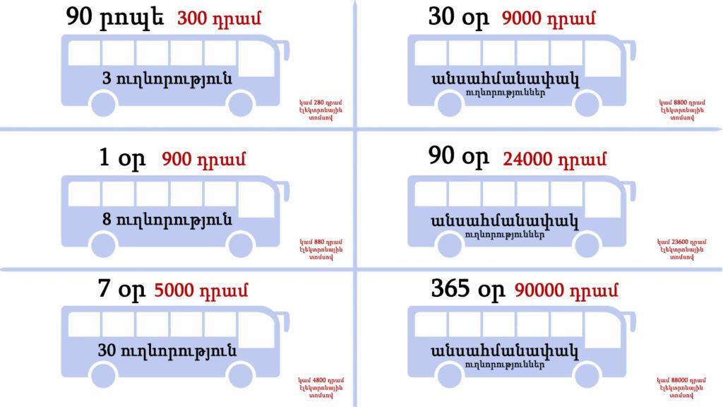 Ստորև ներկայացնում ենք, թե ամսական որքան կծախսեք թանկացումից հետո՝ կախված նրանից, թե ինչ տոմսեր կգնեք։