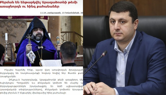 «Իշխանությունն առավոտից ձերբակալություններ/խուզարկություններ է իրականացնում Հայ Առաքելական Եկեղեցու Արագածոտնի թեմում, որի շրջանակներում 6 հոգևորական է ձերբակալվել, այդ թվում` թեմի առաջնորդը: Սա Մայր Աթոռի դեմ հարձակումների հերթական փուլն է, նաև իշխանության գլխավոր հարվածի նախապատրաստությունը, որը ըստ նախապես հայտարարվածի, պետք է տեղի ունենա հոկտեմբերին: